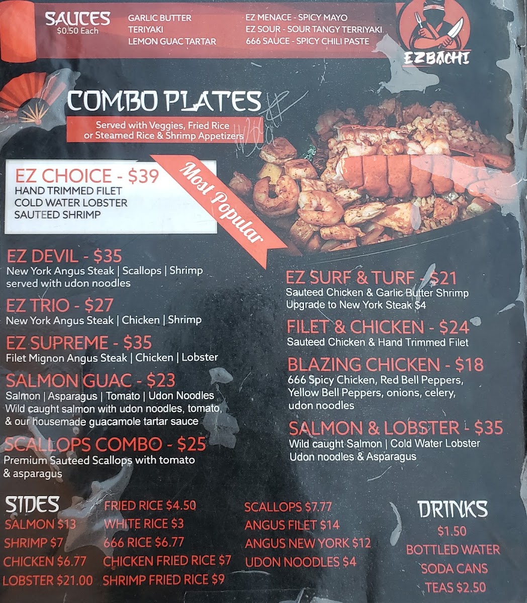 Welcome to Ezbachi Japanese Grill & Sushi, a culinary gem tucked away at 1713 S Central Ave, Phoenix, AZ. This vibrant eatery offers an array of mouthwatering dishes that cater to sushi lovers and grill enthusiasts alike. Their menu boasts delightful options such as the Salmon & Lobster, featuring wild-caught salmon and tender cold-water lobster served alongside udon noodles and asparagus for just US$35.00. For those seeking a savory experience, the EZ Surf & Turf combines sautéed filet with garlic butter shrimp over a bed of fried rice—perfect for satisfying cravings at US$25.00.